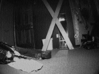 As the night settles it is time for the prisoners daily meal of bread and water. He also gets a chain connecting his leg irons, handcuffs, and recent addition: a Darby collar.