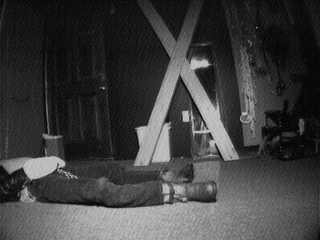 As the prisonert shoulders were getting tired, the Master took some pity on him and laid him down on the cold floor of the dungeon to "rest" a bit.