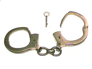 These are made from two pairs of regular (old style) Clejuso handcuffs: two pieces of the top plate (with the key hole), two of the middle (the ratchet) and two of the bottom. Each pair of parts are welded together to produce a cuff that is twice the weight of a regular Clejuso cuff. The chain is heavier and the key post is twice the length of the regular key.