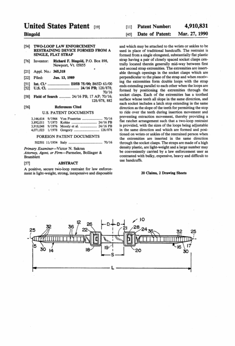 Two-Loop Law Enforcement Restraining Device Formed From a Single, Flat Strap